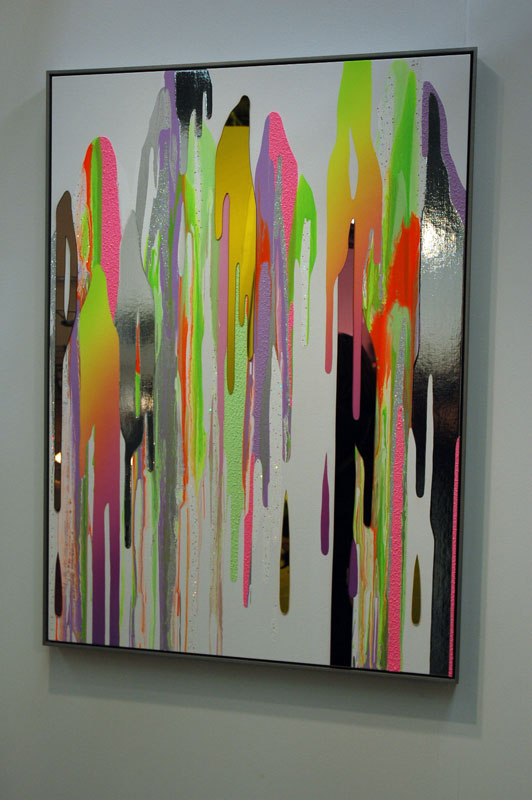 Fine art shiny material throw up. Metallics, acrylic paint, acrylic sheet, some pebbly paint that could be melted Nerds candy. Kind of fabulous, and kind of Fabuloso. Unidentified artist, Kukje Gallery / Tina Kim Gallery, Seoul / New York.