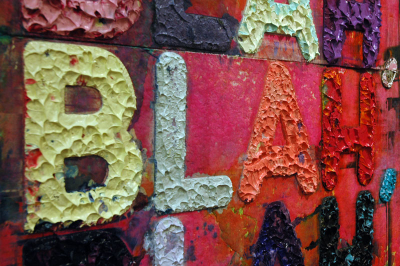 One thing I like about art fairs is that you can always photograph the art, and get really close to them. No photos of Mel Bochner’s work were allowed when I saw his large survey at Whitechapel Gallery in London a few months back, but at Two Palms Press you could get up close (not that there was much room to maneuver in their packed booth anyway). This is a detail from a massive print, maybe 6 or 7′ tall…