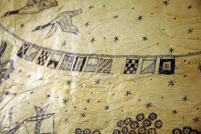 Duke Riley makes insanely detailed and stylish drawings. At the fair, Magnan Metz had him transform the entire booth with a full installation, complete with salvaged wood flooring and some kind of memorial stone that visitors could take rubbings of. And, going along with his nautical interests, semaphores appeared in one of his drawings.