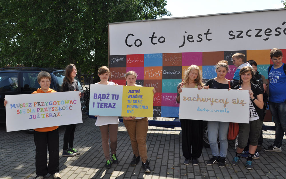 From June 2–8, Galeria Rusz’s travelling exhibition, The Pictures Full of Happiness, traveled across Poland’s Kujawsko-Pomorskie region asking the Polish public to reflect on an emotion. In small villages and cities, artworks by Galeria Rusz, Susan O’Malley, Leah Rosenberg, and myself, appeared as mobile billboards and posters. Organized student activities solicited responses via interactive billboards and artworks.