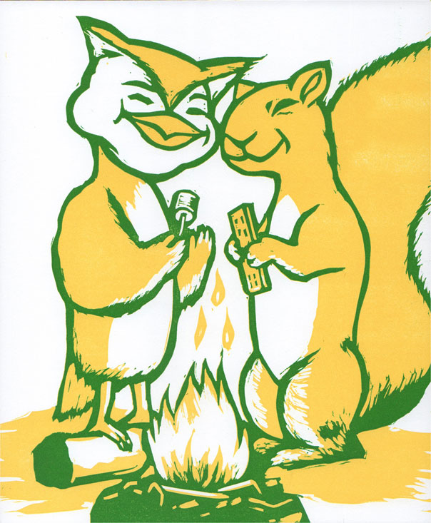 All prints are letterpress-printed and carved from linoleum by hand, by me. Each one is 7 x 8.5 inches, and signed and numbered in a limited edition of 15. They were printed with the support of a Workspace Grant at the Center for Book Arts in NYC.