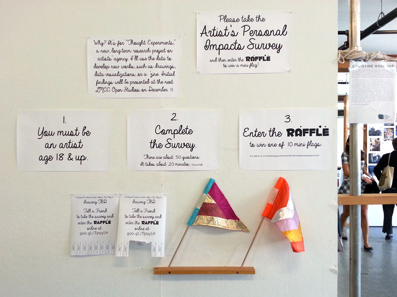 For LMCC’s Open Studios with Process Space artists-in-residence last weekend, I invited artists to take my Artists’ Personal Impacts Survey and enter a raffle to win one one of ten Irrational Exuberance (Asst. Colors) Mini Flags. You still can take the survey and enter the final raffle drawing to be held in a few weeks!