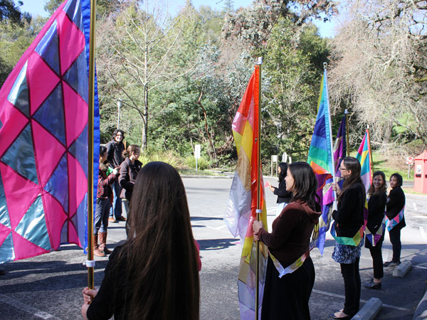 The ceremony begins with a flag procession from the gallery down to Montalvo’s flagpole. Flags range in size from 4×4′ to 4×6′.