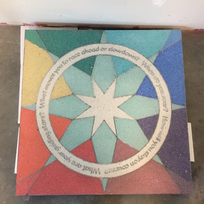Christine Wong Yap, Guiding Stars, 2017, terrazzo, 31 x 31 inches. San Mateo, California // Photo Source: cityofsanmateo.org