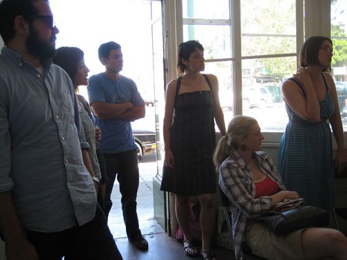 Featured guests at As Is, the dialogue at Irrational Exuberance at Sigh School (L-R): artist, writer and theorist Ginger Wolfe-Suarez, curator and critic Glen Helfand, and writer and curator Patricia Maloney.